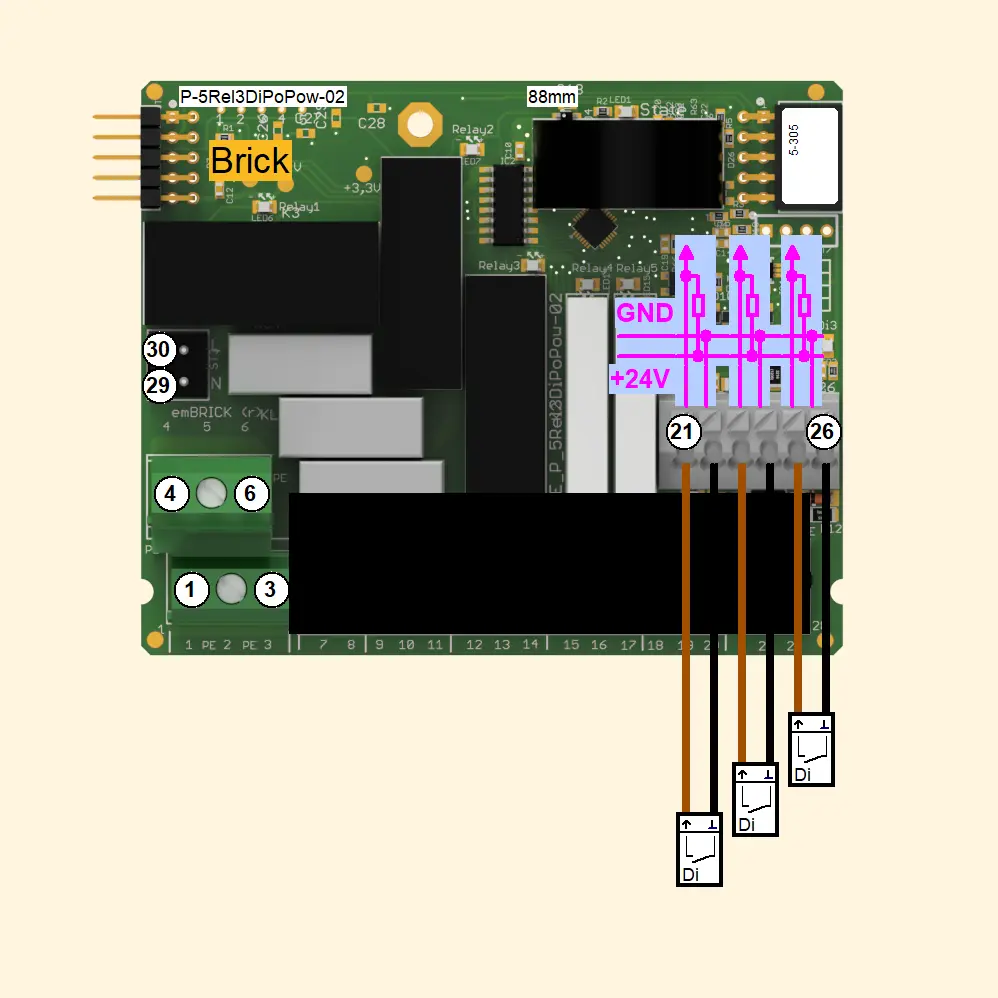 | Input | Digital input | 3 | for ext. contact, 2 wire, common GND |