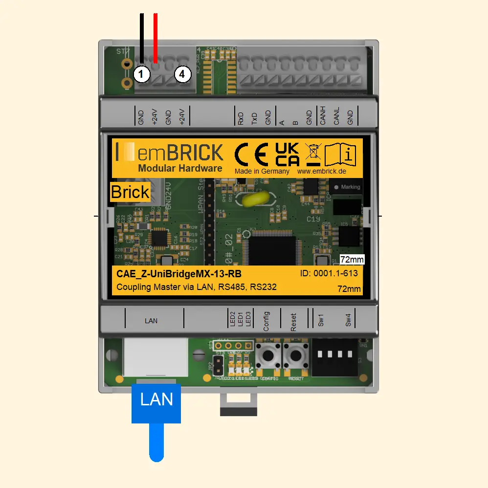 | Brick.X02-brickBUS | max. 1Mbps | brickBUS, TTL 3.3V (intern) | IO-module interface |