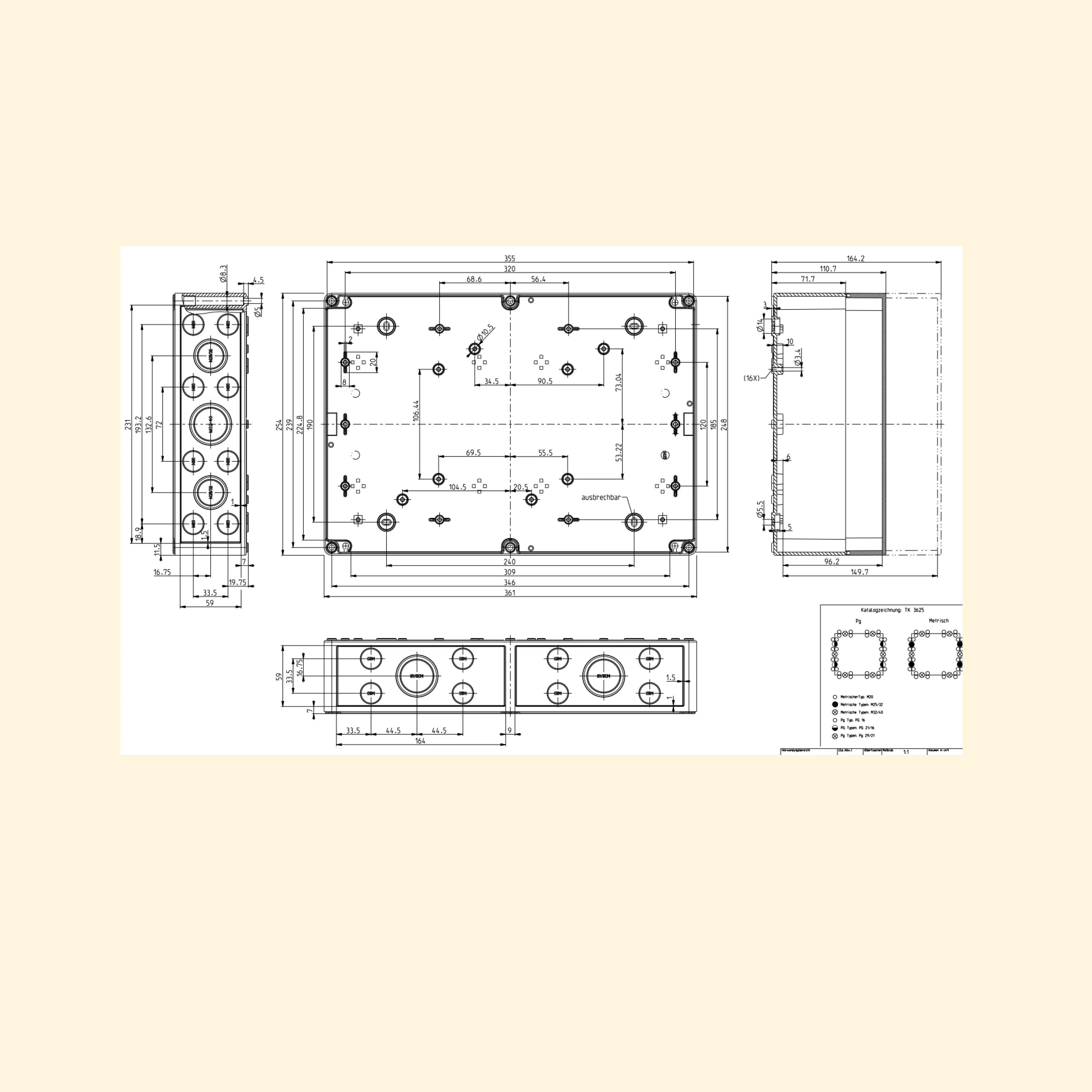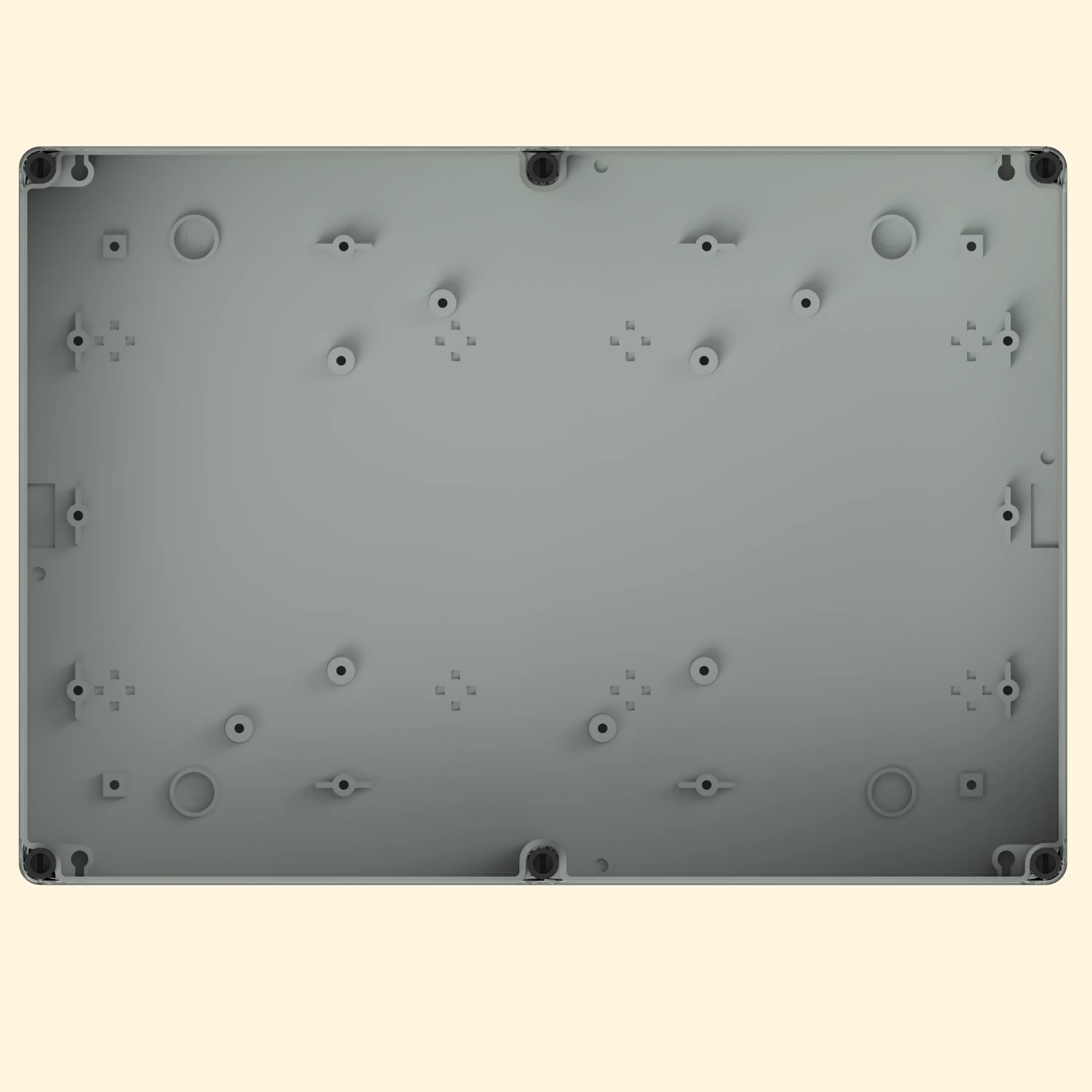 Box made of glass fiber reinforced polycarbonate gray similar to RAL 7035, cover made of transparent polycarbonate, metric knockouts
