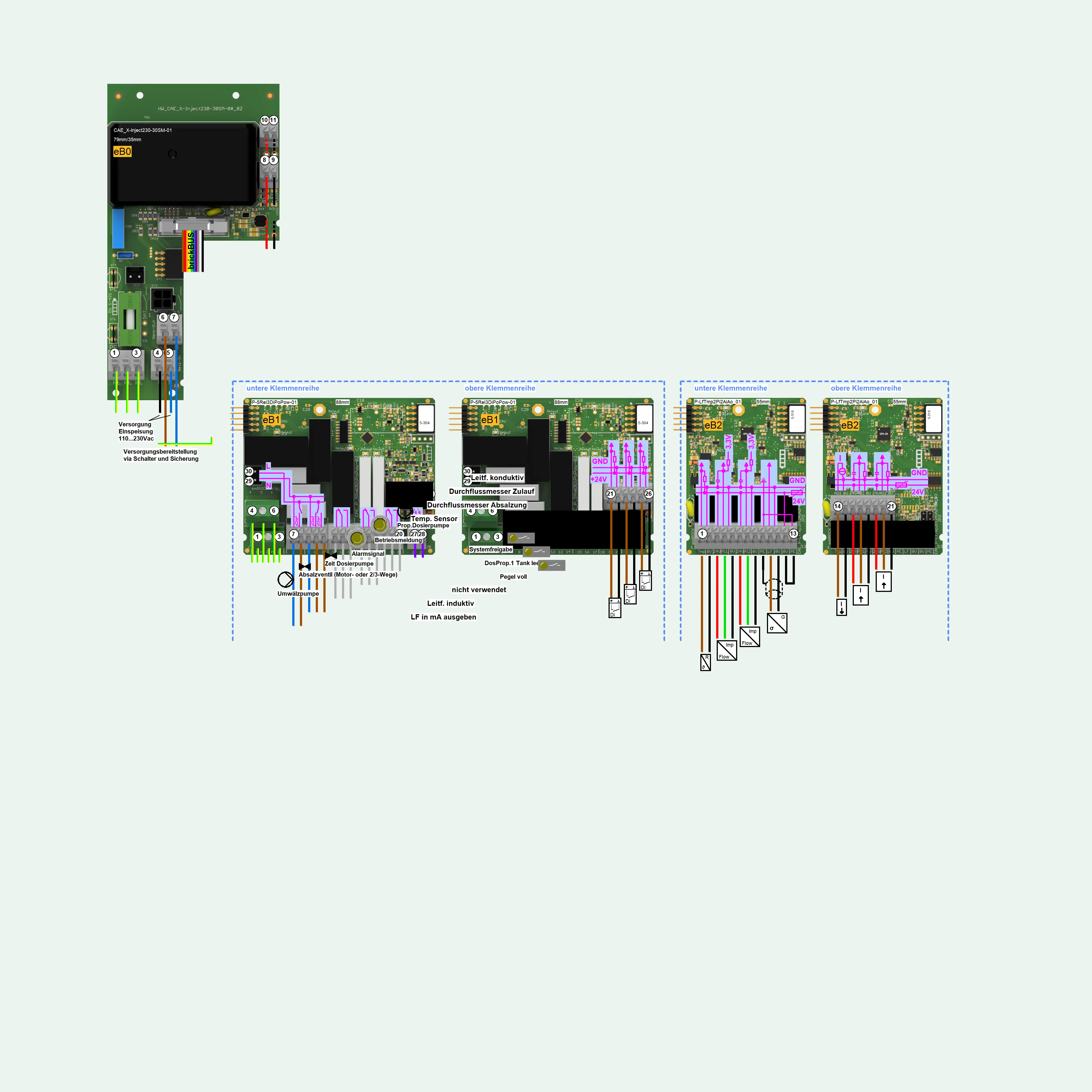 • anschließbarer konduktiver 2-Eletronden- LF-Sensor mit temperaturkompensierter Anzeige und Auswertung der Leitfähigkeit. Plausibilitätsprüfungen zur Erkennung von Sensor- und Kabeldefekten